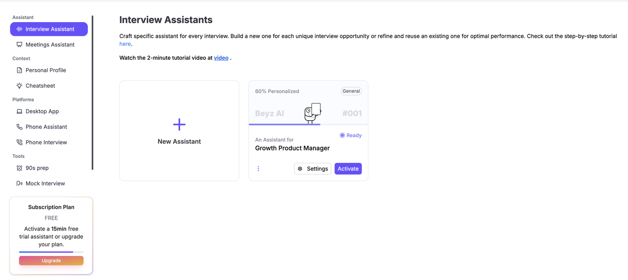 For phone screens, the experience extends with the Phone Interview Tutorial and “Buy Time” phrasing in settings.