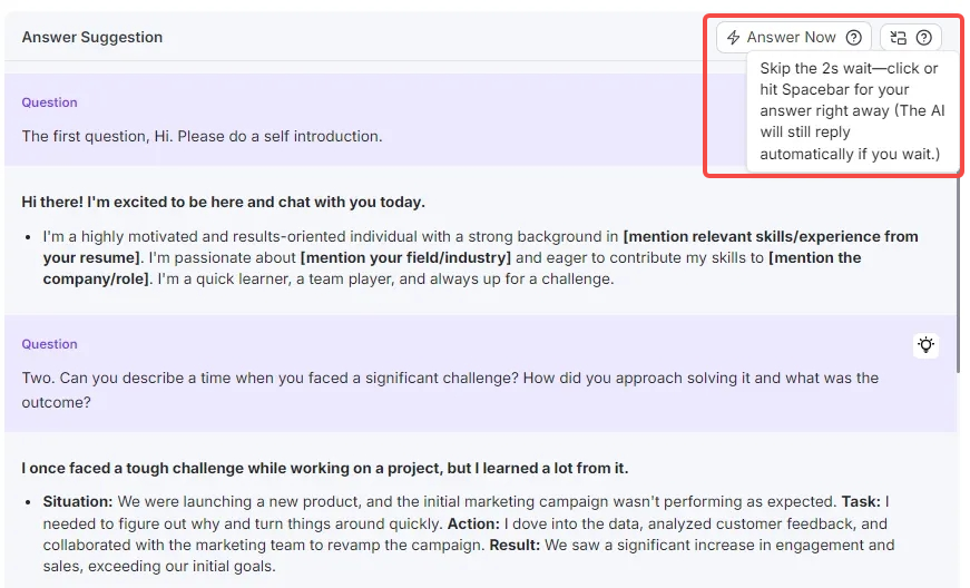 - Example: In a Google PM interview, the candidate hits spacebar to get Answer Now mid-question and instantly gets a STAR-style response.