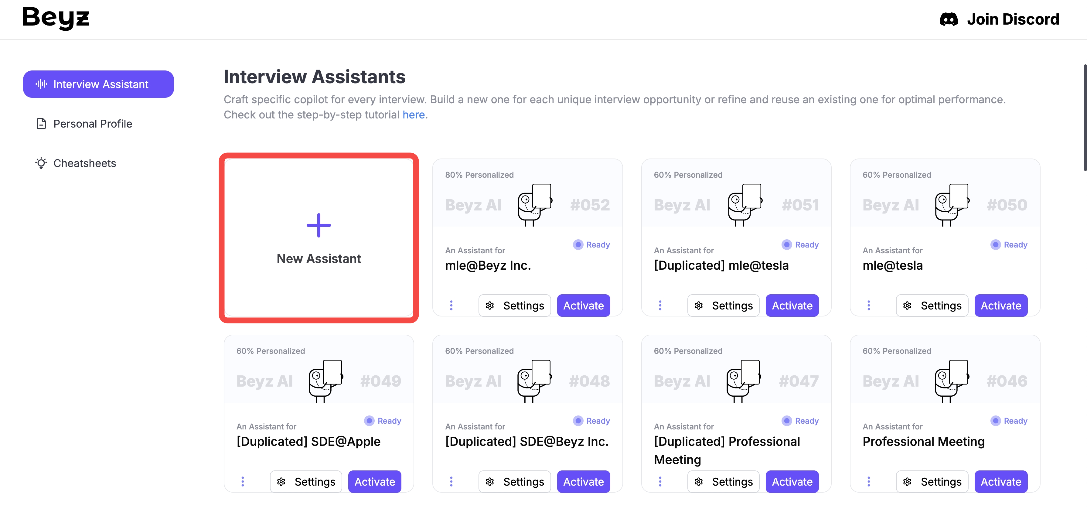 Create New Assistant in Interview Assistant Page