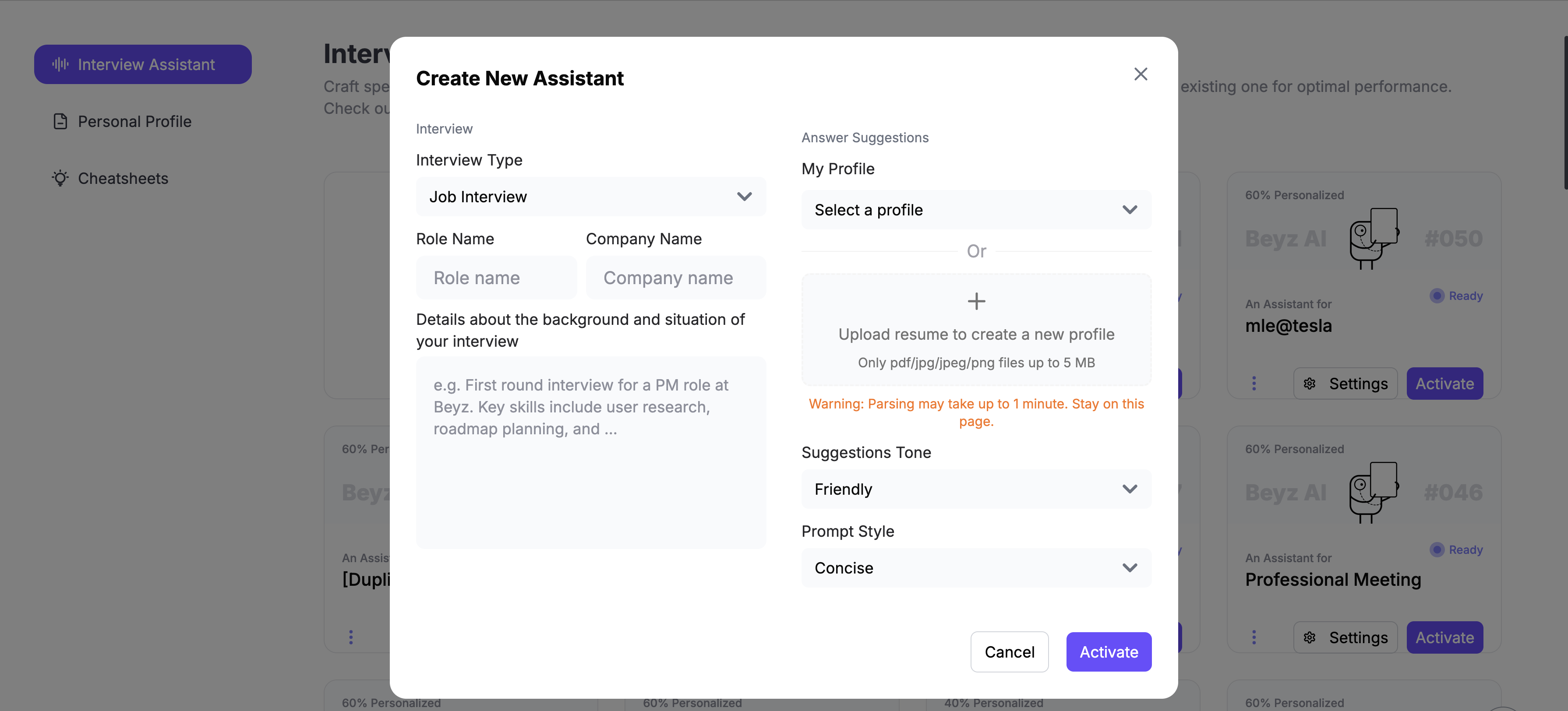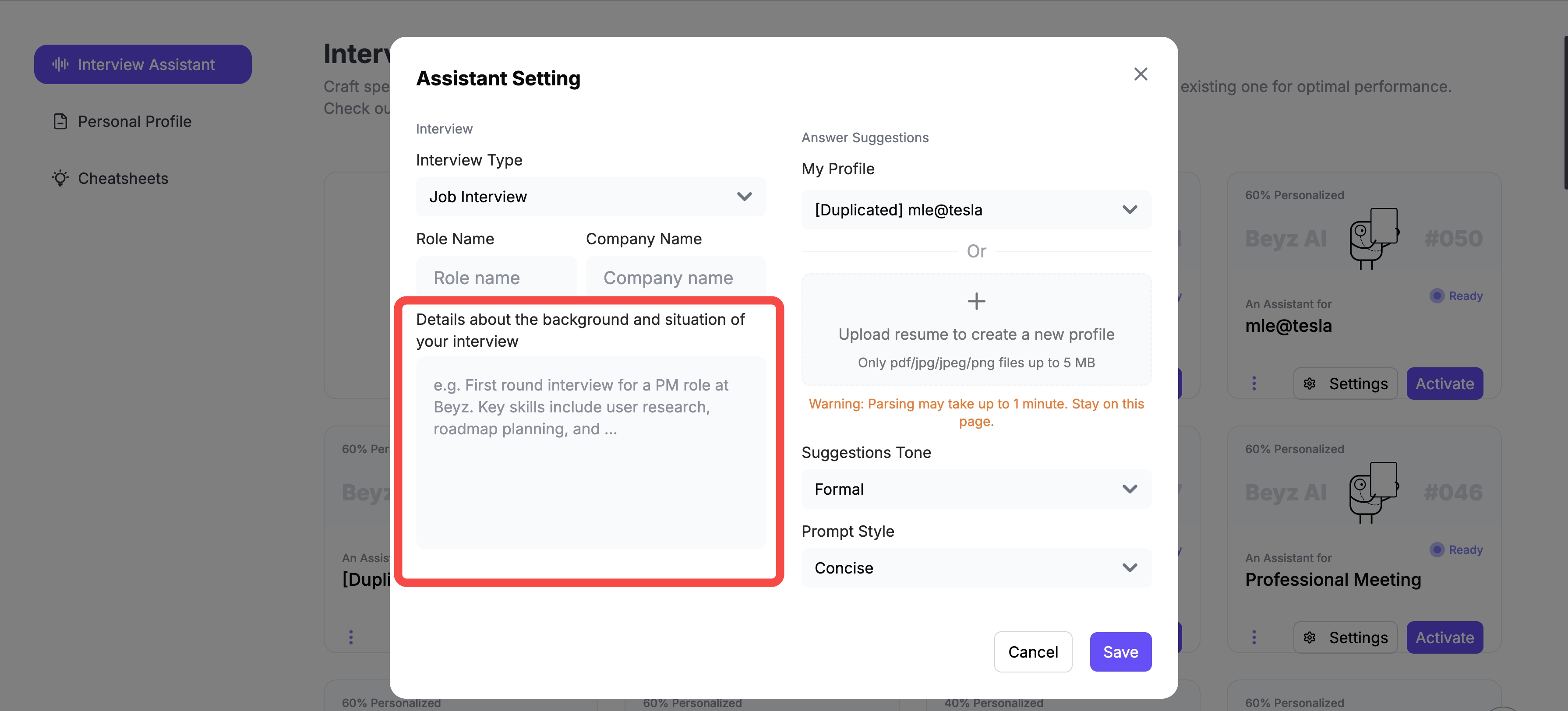Before your actual interview, make sure your browser, audio settings, and assistant profile are properly configured. Once everything is connected, Beyz can listen to the interviewer’s questions and generate tailored, structured answers that match your role and background.