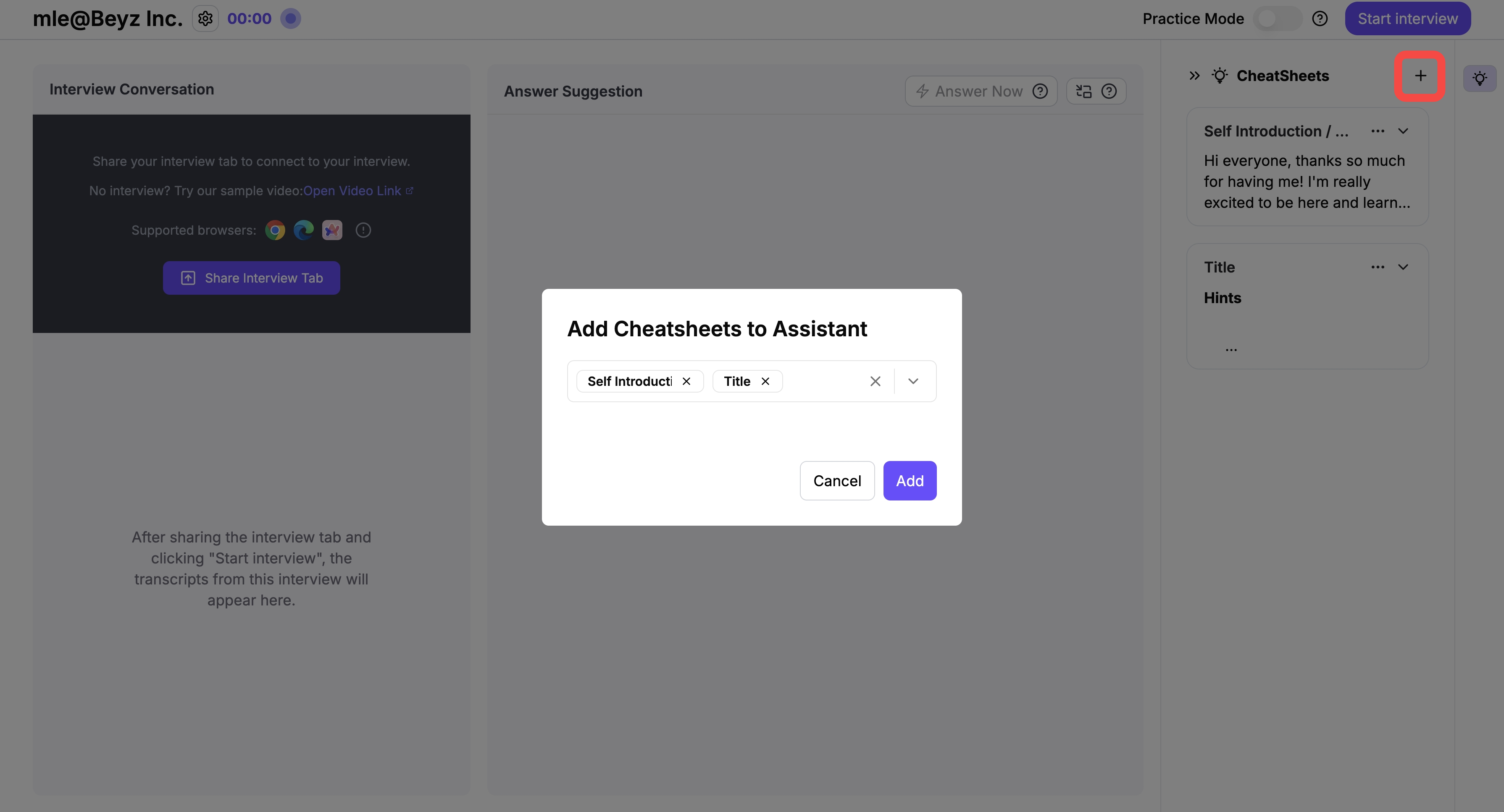 - Click Ready to Connect on Beyz and select your interview tab or window.