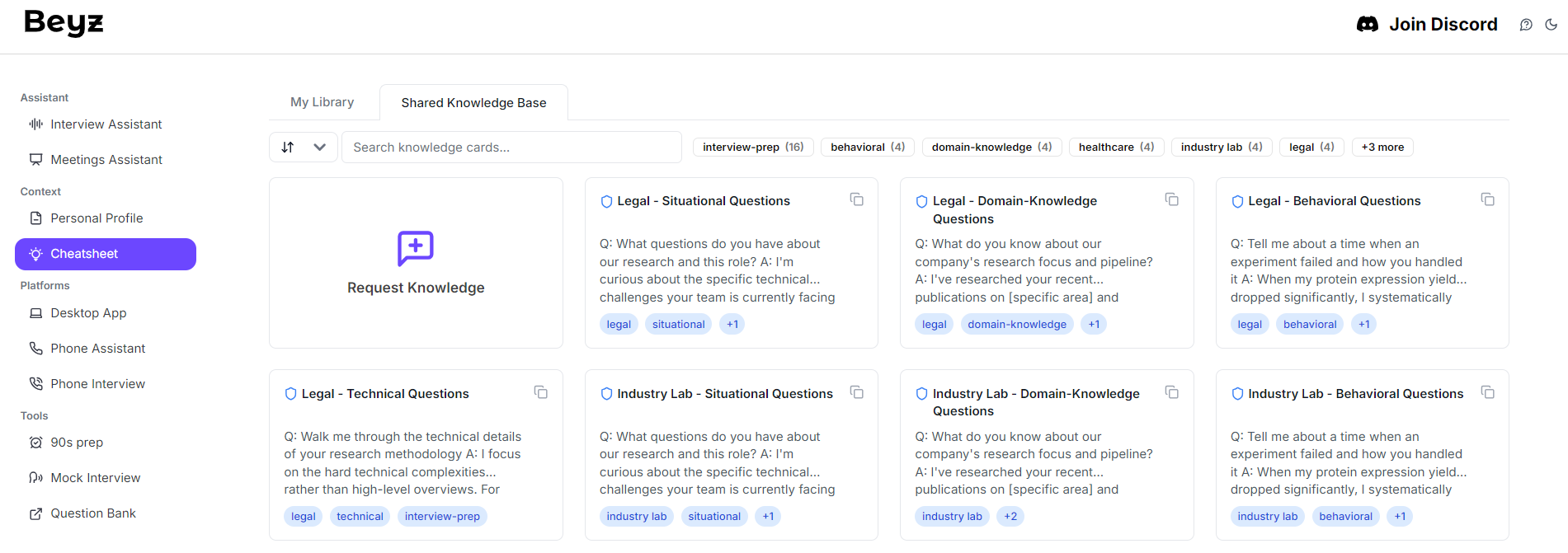 Once Beyz knows who you are and what you’re interviewing for, it builds your cheat sheets automatically.