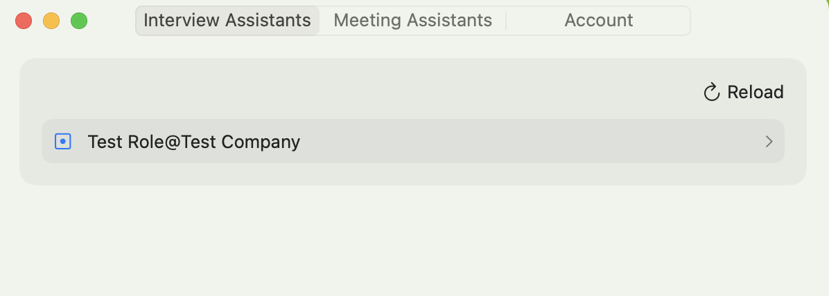 - On the Mac App home screen, select the assistant you want to use (for meetings, interviews, or other contexts).