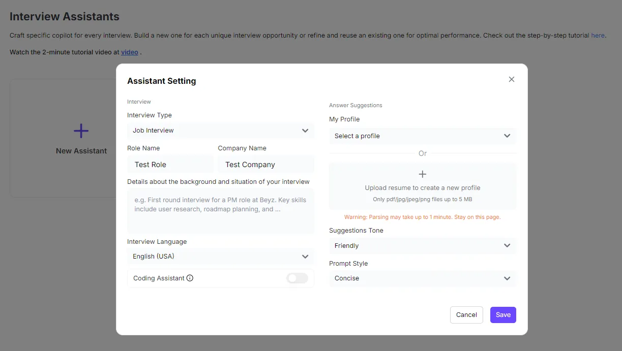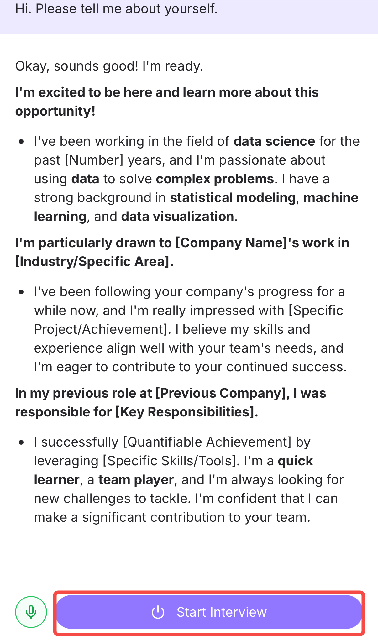 - Upload your resume, job description, and any notes that can help personalize your answers