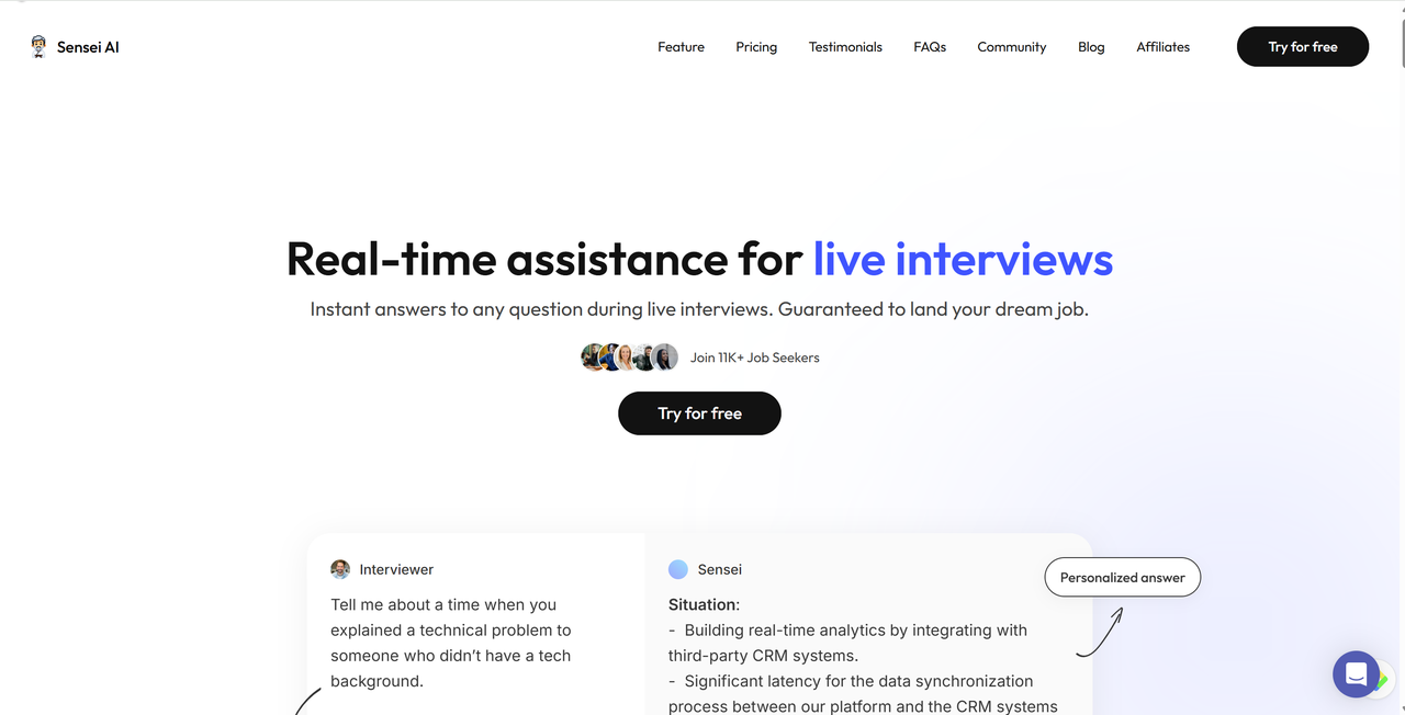 Sensei AI is a real-time interview assistant, giving interviewers instant answers to any questions during their live interview.