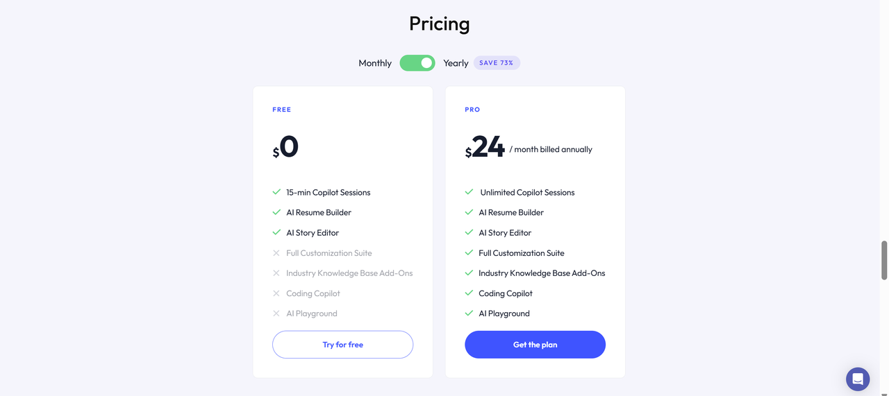 - Pro Plan: $89/month or $24/month if paid annually. It offers full access to real-time coaching, stealth mode, and all advanced features.