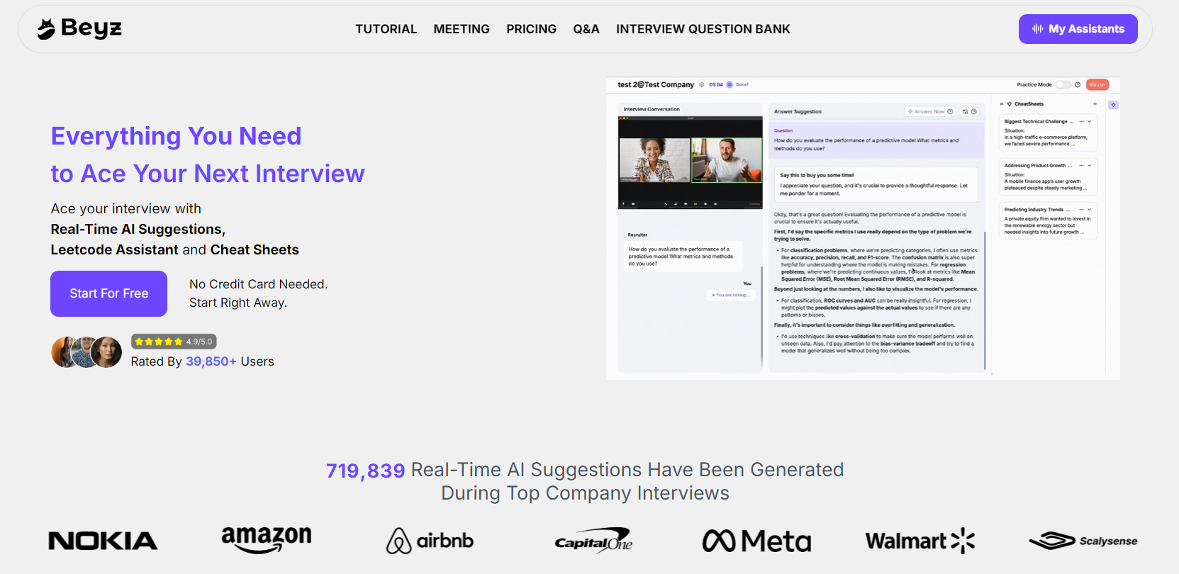 Both platforms have strengths. But if you are new to interviewing and want fast, affordable, and effective in-the-moment support, Beyz Interview Helper is the better choice.